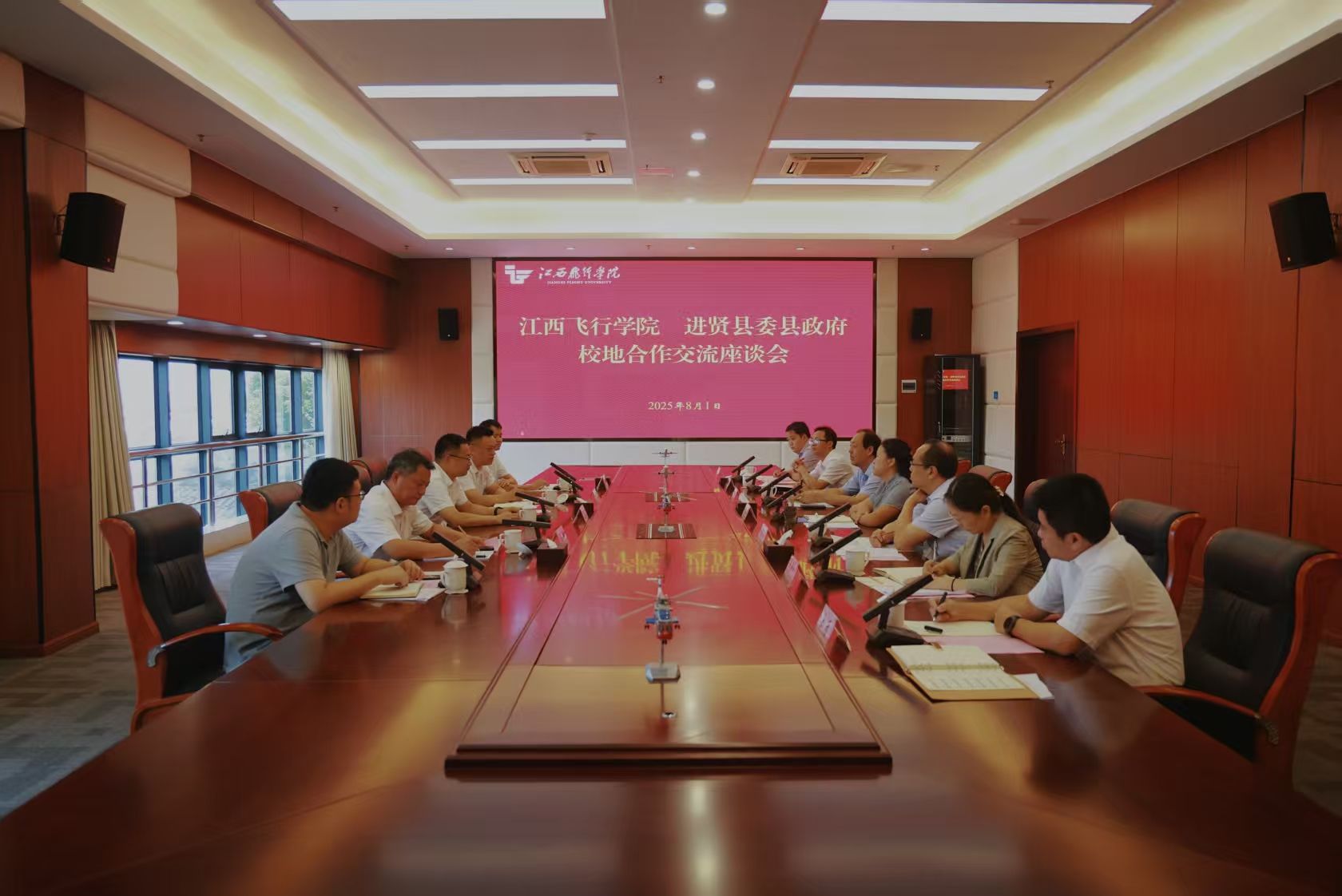 进贤县发改委、商务局和学校总飞行师、教务处、校友联络服务中心、航空运动学院、交通与运输工程学院等部门同志参加座谈。