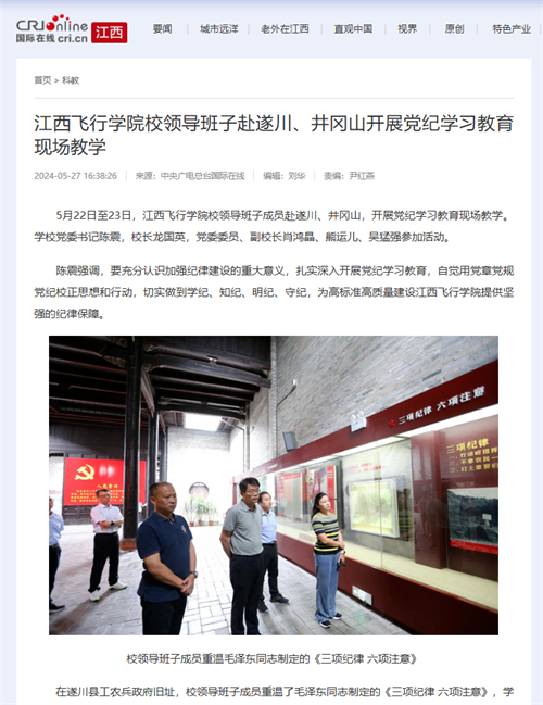 多家媒体报道:江西飞行学院校领导班子赴遂川、井冈山开展党纪学习教育现场教学