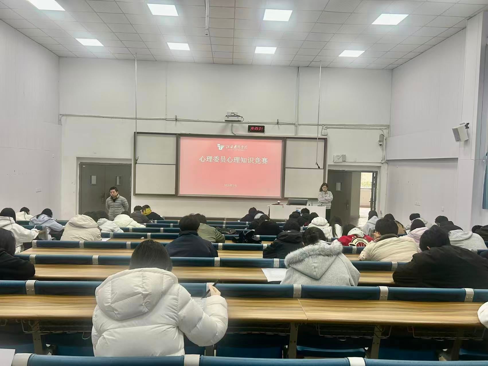 为进一步夯实我校心理健康教育工作的基层力量,全面检验心理委员队伍的专业理论素养,3月21日,由学工处心理咨询中心组织举办的心理委员心理知识竞赛在一教学楼阶梯教室顺利举行。来自各二级学院的100余名心理委员参加了本次竞赛。