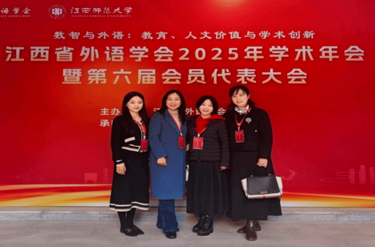 12月6日,江西省外语学会2025年学术年会暨第六届会员代表大会在江西师范大学召开。大会由江西省外语学会主办,江西师范大学外国语学院承办。全省300余名外语界专家学者汇聚一堂,深入探讨数智时代外语学科的发展路径。文法学院宋艳萍、金阗、吴泓颖和匡丽四位老师应邀出席了会议。